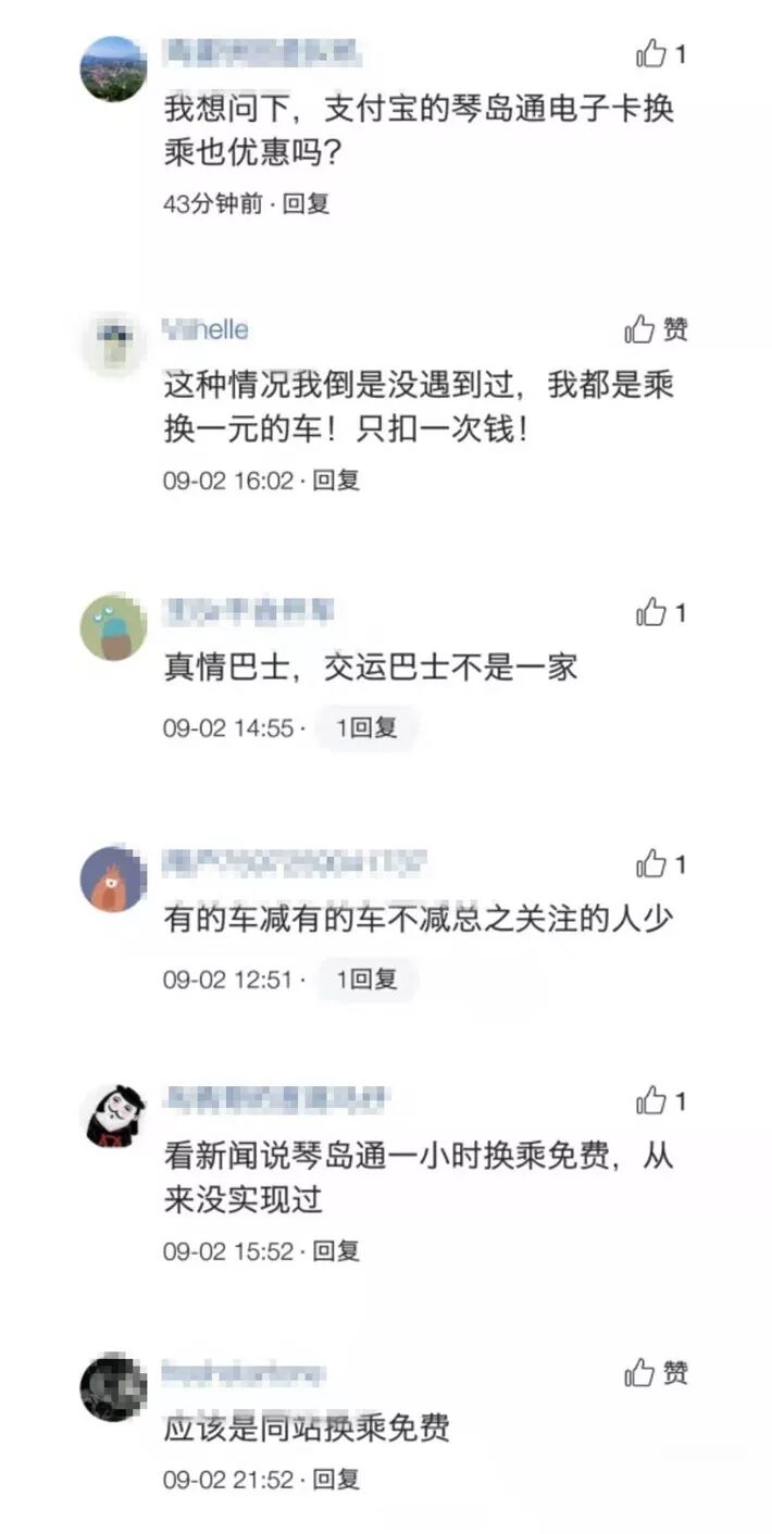 在评论区,很多网友指出,使用琴岛通卡可以优惠换乘,但不是免费换乘。