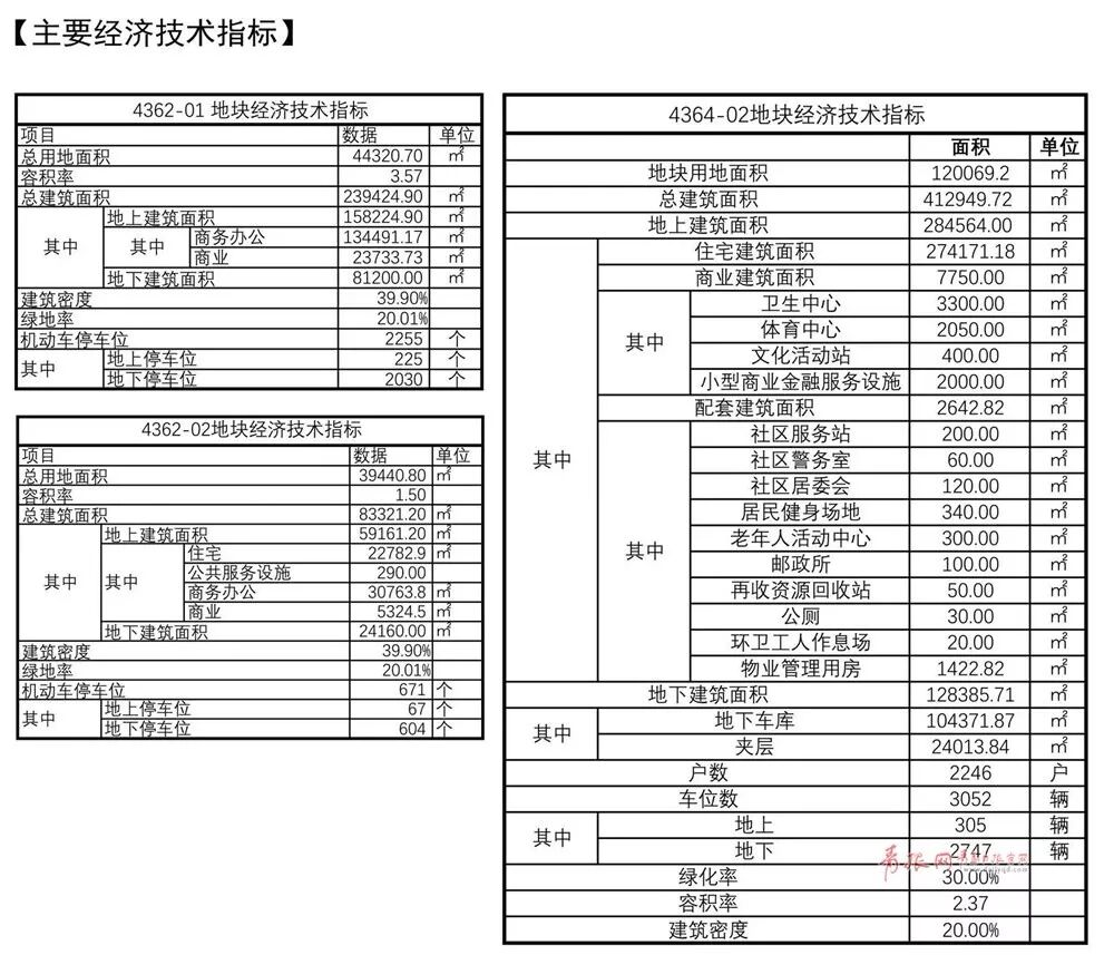 其中,4362-01地块总面积44320.7平方米,总建筑面积239424.9平方米,其中地上建筑面积158224.9平方米,包含商务办公建筑面积134491.17平方米,商业建筑面积23733.73平方米。项目地下建筑面积81200平方米,规划停车位2255个。