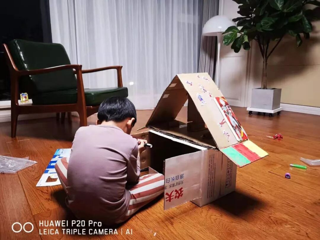 放假延期,从第一天的岁月静好到第二天的其乐融融再到出钱都没人看。二胎生活就是鸡飞狗跳,还好爸爸承担了老大的手工充分分散老大注意力,用旧床单做八爪鱼、废纸壳做书架、给小鸟做房子,疫情宅在家,才知道自己的另一半还有这些技能。