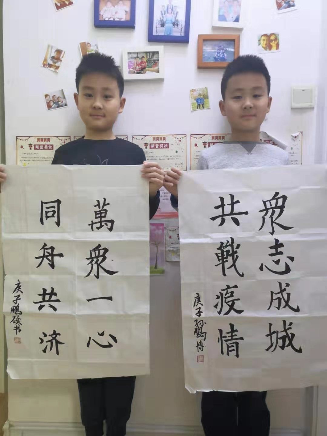 这对双胞胎小哥俩在家通过书法表达心声,为中国加油!